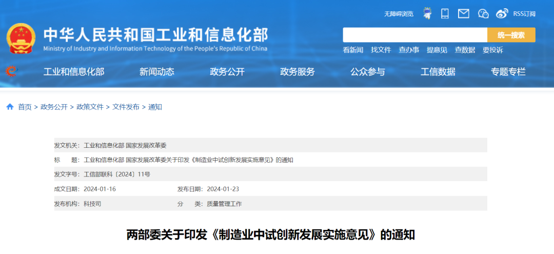 1月23日,工業(yè)和信息化部、國家發(fā)展改革委對(duì)外發(fā)布了《制造業(yè)中試創(chuàng)新發(fā)展實(shí)施意見》(以下簡稱《實(shí)施意見》)。據(jù)了解,中試是把處在試制階段的新產(chǎn)品轉(zhuǎn)化到生產(chǎn)過程的過渡性試驗(yàn);制造業(yè)中試,是推動(dòng)科技成果產(chǎn)業(yè)化的關(guān)鍵環(huán)節(jié)?!秾?shí)施意見》提出創(chuàng)新發(fā)展中試產(chǎn)業(yè):